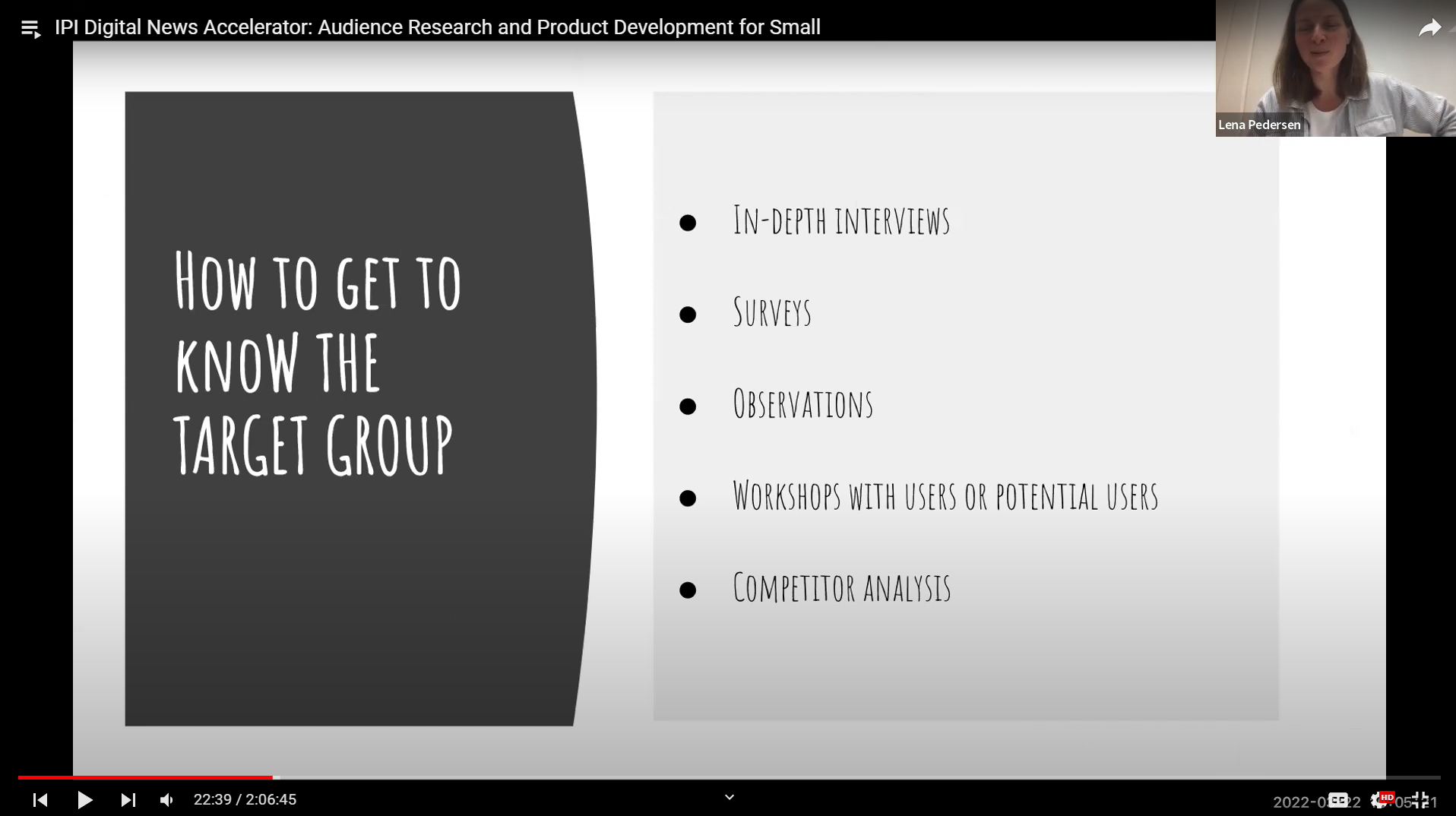 Watch the video recording here to learn more about the product development process (skills, techniques, tools…), how to conduct successful audience research to reveal your users’ pain points, and how to analyze research to create product that serves your community as well as your journalism goals.
