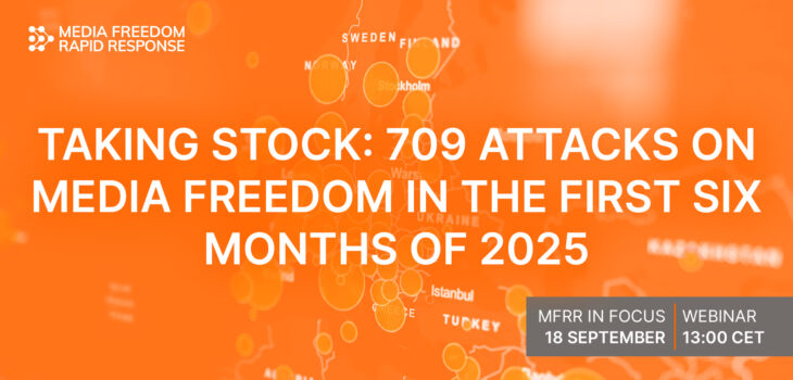 Between January and June 2025, the Media Freedom Rapid Response (MFRR) documented 709 press freedom violations against 1249 media workers in 36 European countries. In this webinar, we will take a look at what types of attacks media workers faced, who attacked them, and in what context. We will zoom in on developments in four focus countries – Georgia, Serbia, Romania, and Bosnia and Herzegovina – where media workers operated under severe pressure these first six months. Foreign agent laws and narratives are also highlighted as a worrying trend that threatens independent journalists and media outlets in Europe.