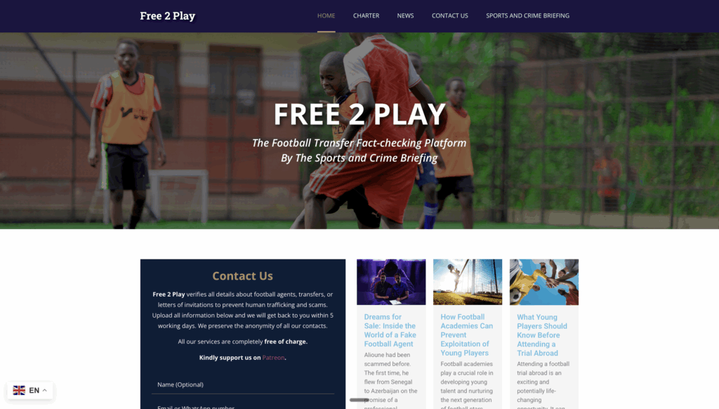 But Chris wanted even more. Reporting on crime is one side of the coin. Preventing it is the other. With Free2Play, he planned to launch the first free platform enabling players and families to run background checks on agents before signing exploitative deals. Since the service should remain free, an alternative revenue model was necessary – sponsorship being the logical path.