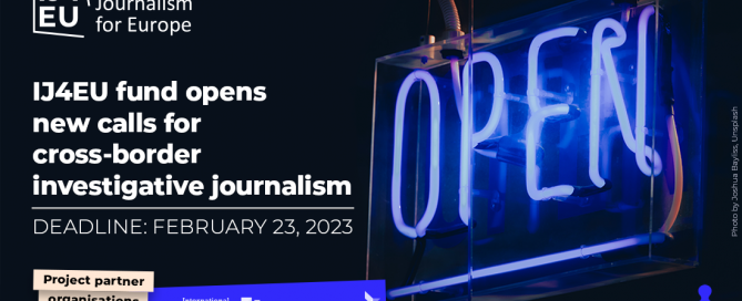 Newsrooms and freelancers eligible for funding and support Deadline for applications: February 2023 The Investigative Journalism for Europe (IJ4EU) fund today, January 12, opened two new calls for cross-border investigative journalism projects in the European Union and EU candidate countries. IJ4EU’s Investigation Support Scheme will provide grants of between €5,000 and €50,000 to allow cross-border … Continue reading IJ4EU fund opens new calls for cross-border investigative journalism