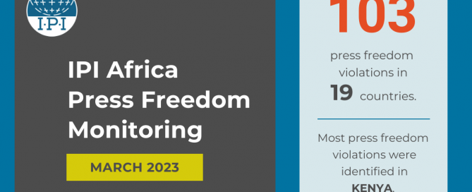 Journalists across Africa continued to bring the public critical news and information about elections, political protests, and conflict, while also facing risks to their safety and security, as IPI’s monitoring of press freedom violations for the month of March showed. According to IPI data on press freedom threats and violations, 103 incidents were identified across … Continue reading IPI monitoring: Press freedom under threat in Kenya, Nigeria