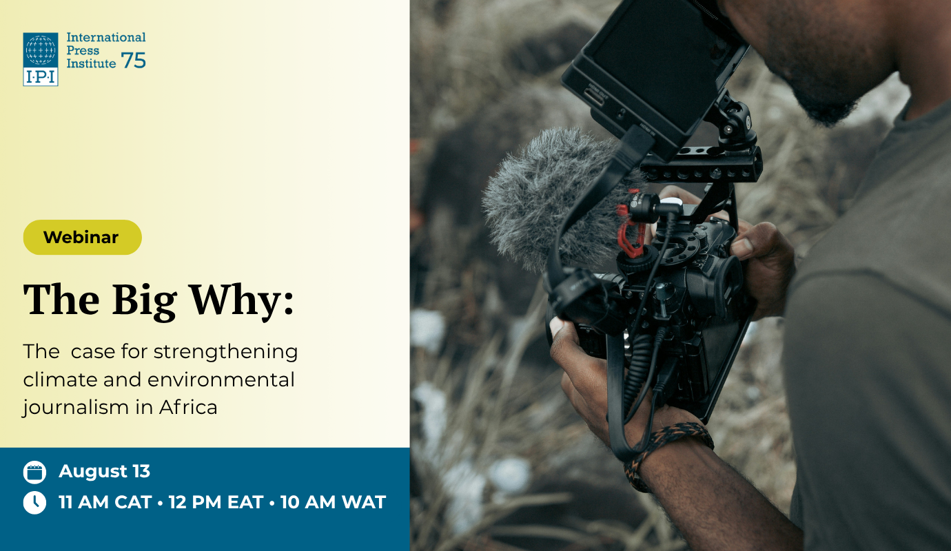 Africa’s environmental crisis is intensifying—from droughts to deforestation—yet journalists telling these vital stories face threats, censorship, and disinformation. IPI’s webinar titled “The Big Why” explored the importance of strong climate journalism in light of the risks and challenges that journalists encounter when covering environmental stories.