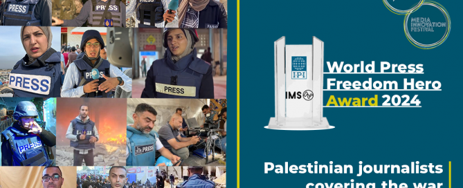 Palestinian journalists covering the war in Gaza are the recipients of the 2024 IPI-IMS World Press Freedom Hero award. This year marks the first time that the award has been given to a group of journalists collectively. It recognizes the extraordinary courage and resilience that Palestinian journalists have demonstrated in covering the war in Gaza. … Continue reading Palestinian journalists covering Gaza receive 2024 IPI-IMS World Press Freedom Hero award