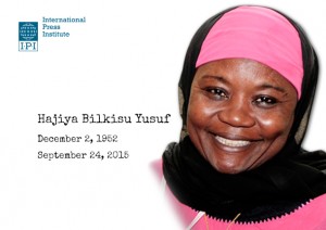 IPI mourns former board member Hajiya Bilkisu Yusuf September 28, 2015 IPI Contributor Rebecca Hetzer The International Press Institute (IPI) today expressed deep sadness at the news of the death of former IPI Executive Board Member and respected Nigerian journalist Hajiya Bilkisu Yusuf, who was tragically killed in a stampede in Mina, Saudi Arabia on Thursday. The first female editor at the Sunday Triumph Kano, Bilkisu served on IPI’s Executive […] Read more »
