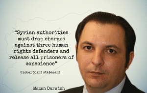 IPI joins international call on Syrian authorities to drop charges against press freedom hero Mazen Darwish, two others August 14, 2015 In a joint global effort, the International Press Institute (IPI), the Syrian Centre for Media and Freedom of Expression (SCM) and fifteen other international organisations today called on Syrian authorities to drop all charges against recently released Syrian journalist and IPI World Press Freedom Hero Mazen Darwish and two colleagues, Hani Al-Zitani and Hussein Gharir. […] Read more »
